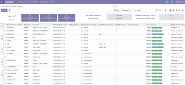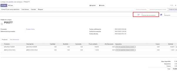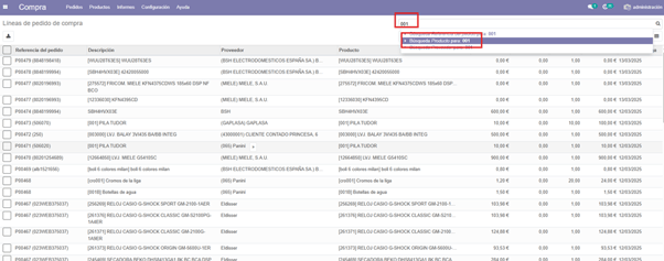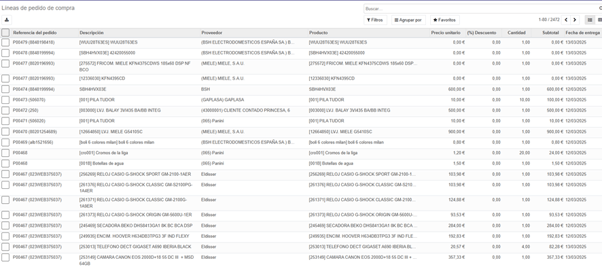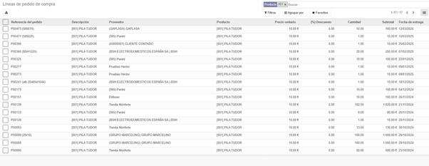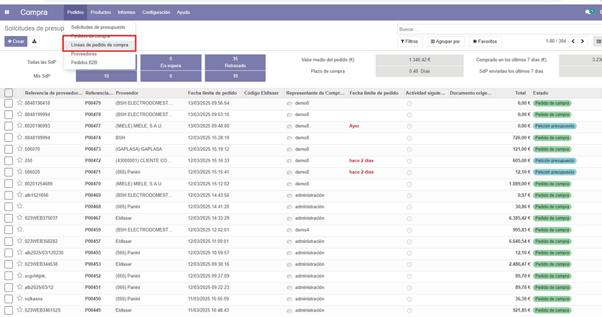 Pulsamos en pedidos y a continuación líneas de pedido de compra