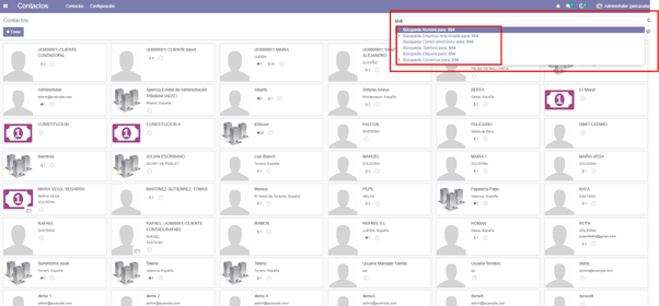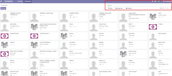 Desde el módulo de contactos, tenemos que situarnos encima del buscador