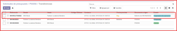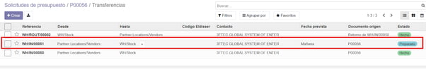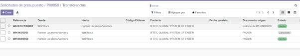 Finalmente, las transferencias de ese pedido quedarán de la siguiente manera