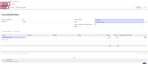 Pulsamos sobre Guardar y Publicar para poder registrar el asiento