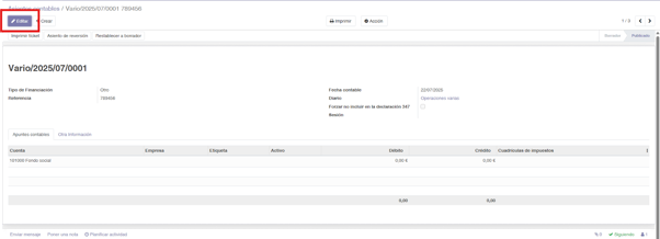 En esta sección aprenderás a crear y editar asientos contables en Odoo, utilizando el módulo de Facturación y Contabilidad. Te guiaremos paso a paso para generar un nuevo asiento contable y, en caso necesario, modificar uno ya publicado.