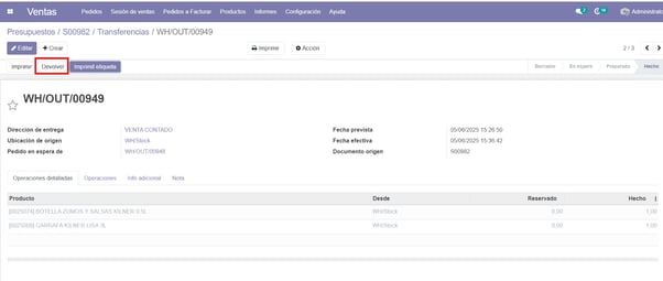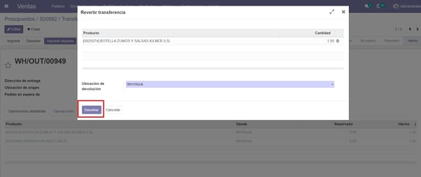 Dejamos los productos a devolver y marcamos ‘Devolver’