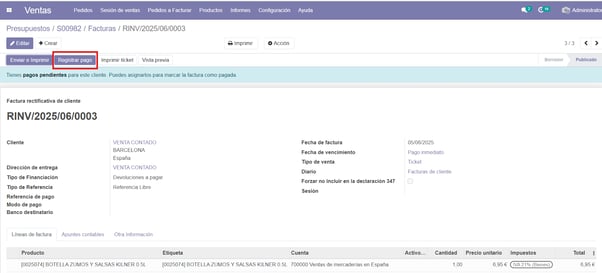 Confirmamos el borrador y registramos el pago de la factura