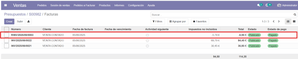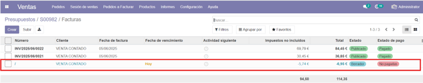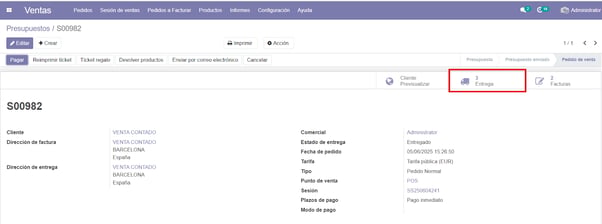 Una vez tenemos creado un pedido con varias entregas y facturas: