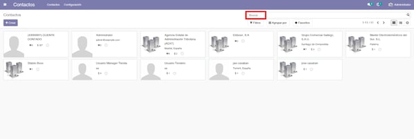Una vez dentro, utiliza la barra de búsqueda o los filtros disponibles para localizar el contacto del cliente o proveedor, cuyos datos deseas actualizar.