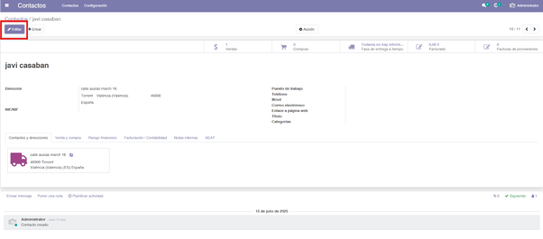 Dentro de la ficha del contacto, pulsamos sobre el botón editar