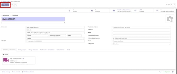 En este apartado aprenderás cómo modificar los datos de un contacto en Odoo de forma rápida y sencilla. Esta acción es fundamental para mantener actualizada la información tanto de clientes como proveedores en el sistema. Actualizar correctamente estos datos no solo mejora la organización interna, sino que también garantiza que los procesos como ventas, envíos y facturación se realicen sin errores.