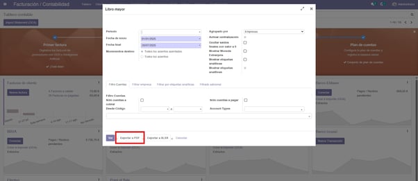 El Libro Mayor es uno de los informes contables más importantes en cualquier empresa, ya que recoge todos los movimientos registrados en cada cuenta contable durante un período determinado. En Odoo, generar este listado es un proceso sencillo y rápido, este manual te explica de forma clara cómo acceder al informe y como exportarlo en formato PDF.