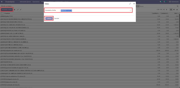 Seleccionamos Inventario a fecha, aplicamos la fecha a la que generar el inventario y confirmamos