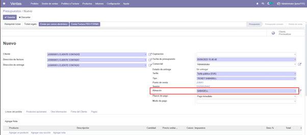 En este caso, la factura no se genera de forma automática como en la forma estándar, por lo que será necesario crearla prácticamente de manera manual, asegurando que quede vinculada a la Tienda A, que es quien realizó la venta.