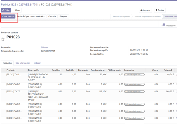 Una vez dentro, buscar el pedido por referencia de pedido o factura de Eldisser