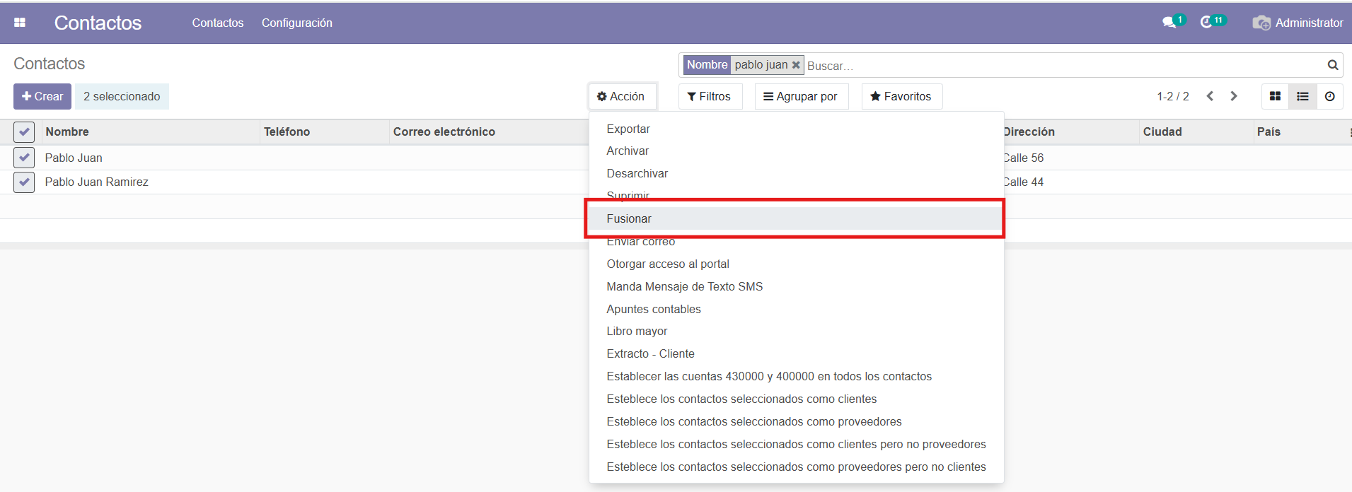 En Odoo, es común que se creen contactos duplicados por error. Para mantener una base de datos limpia y organizada, el sistema permite fusionar fácilmente estos registros. Esta guía te mostrará cómo unificar dos contactos en uno solo, conservando toda la información importante.