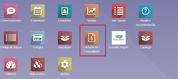Una vez que tenemos los pedidos creados en odoo, tenemos que irnos al módulo de facturación y contabilidad