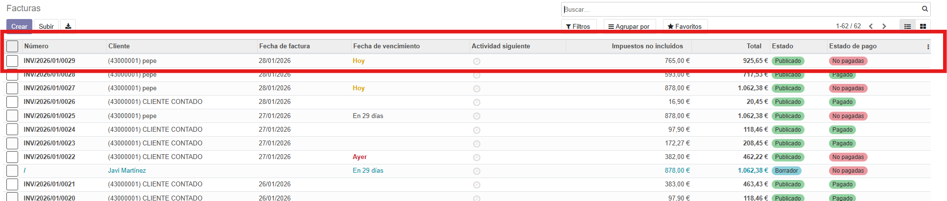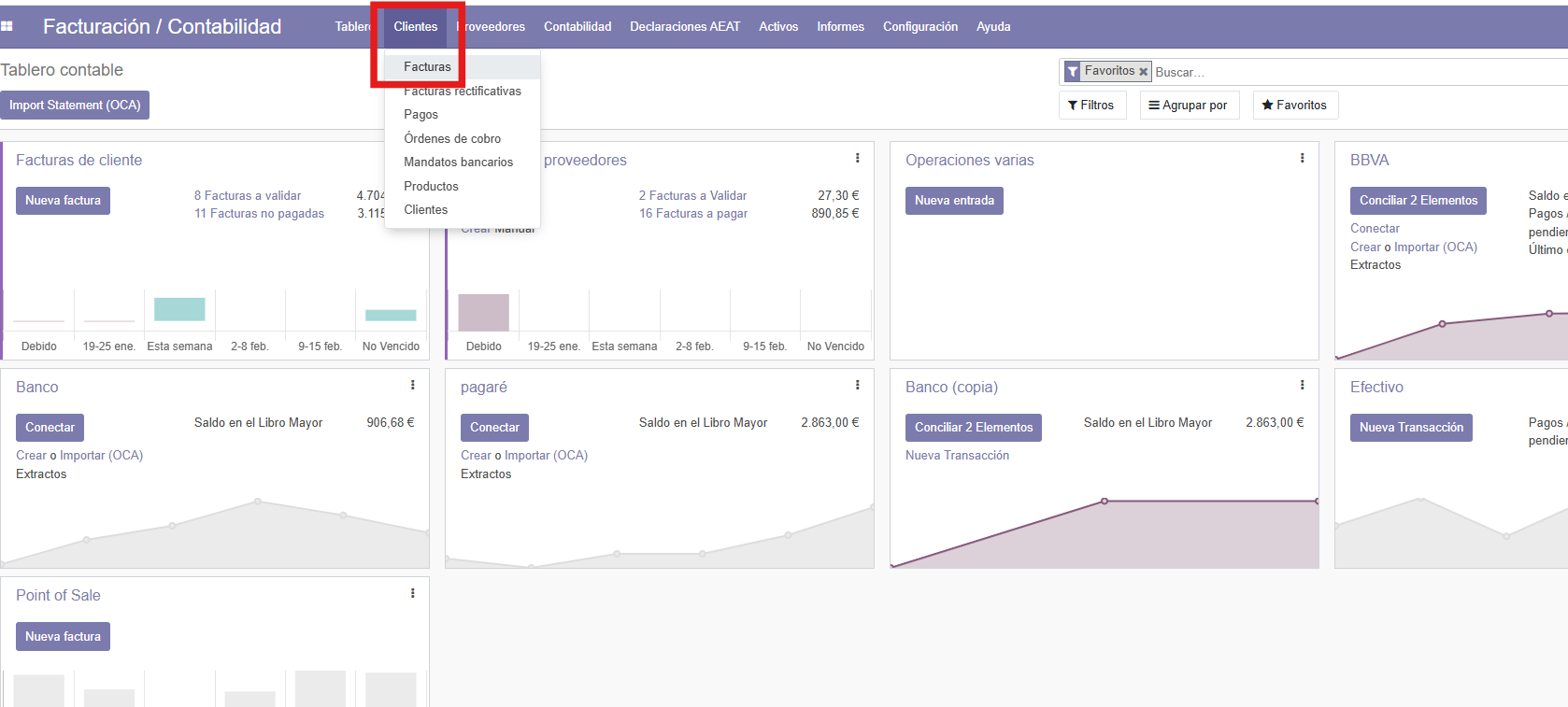 Desde el modulo de facturación, accedo al listado de facturas de clientes