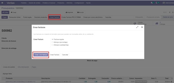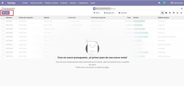 Entramos en el módulo de ventas y entramos en ‘Crear’