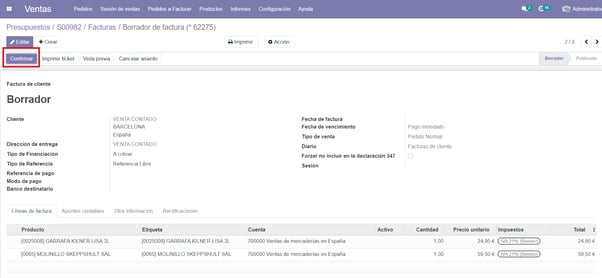 Confirmar el borrador de la factura