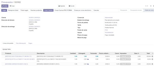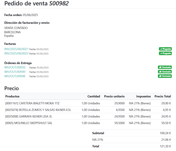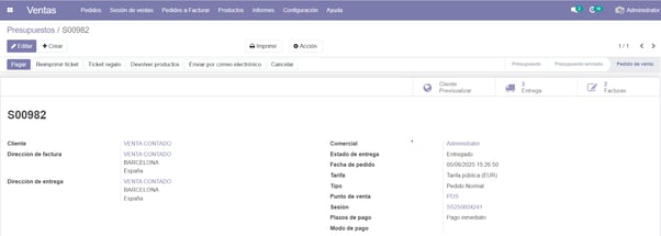 Así habremos terminado y tendremos el pedido con varias entregas y facturas