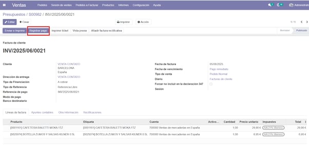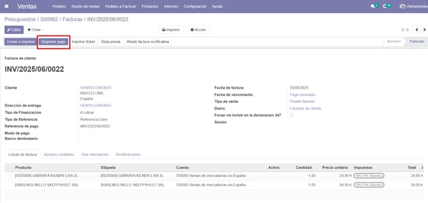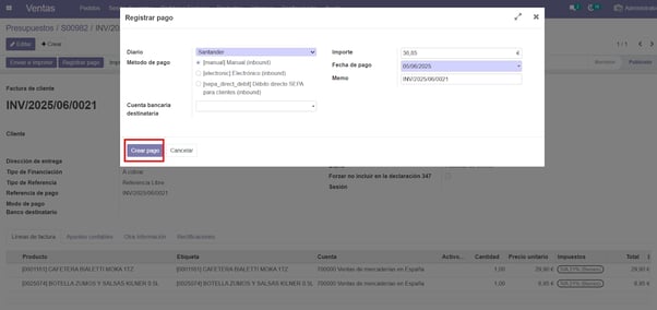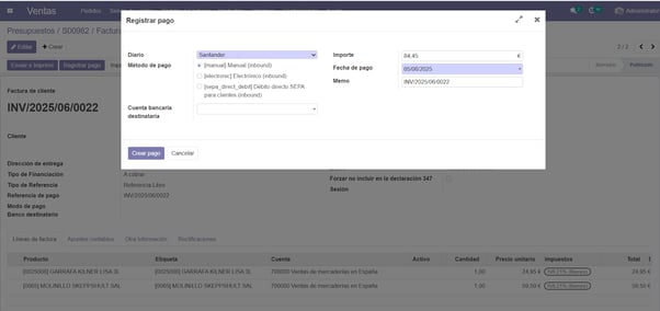 Registramos el pago de la factura