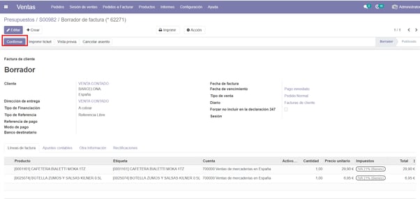 Confirmamos el borrador de la factura