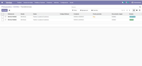 En entregas, transferencias, vemos las entregas a cuentas en preparación y hechas