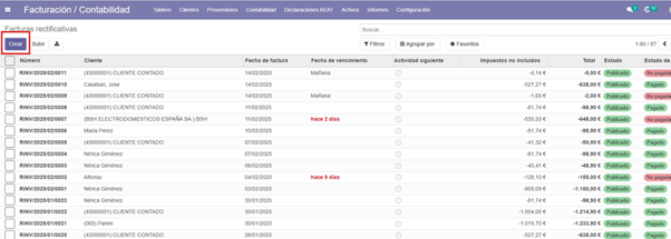 Pulsamos al botón crear, para generar la factura rectificativa.