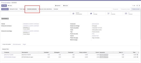 La segunda opción se utilizará en el caso de querer rectificar la factura, generando una factura rectificativa, sin añadir la devolución al stock.