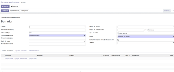Este caso sobre todo es útil para aquellas facturas rectificativas que queremos hacer de facturas que hemos realizado en el programa de gestión que se utilizaba anteriormente o para realizar a raíz de una factura que las líneas sólo eran servicios.