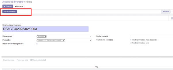Nos vamos al módulo de inventario, entramos en operaciones y ajuste de inventario