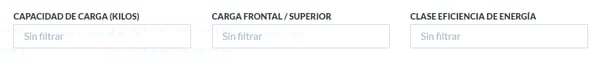 Una vez seleccionada la familia de producto, se mostrarán varias celdas de filtrado, que te ayudarán a filtrar tu búsqueda por atributos.