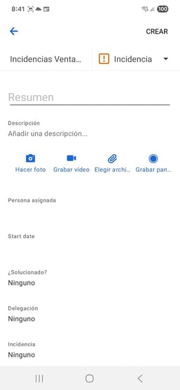 Tipo de actividad: Seleccionaremos Incidencia o Consulta.