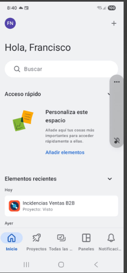 Si el ticket requiere adjuntar documentación mediante fotos, accederemos desde nuestro teléfono de empresa a Jira, iniciaremos sesión y seleccionaremos la opción "+":