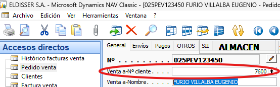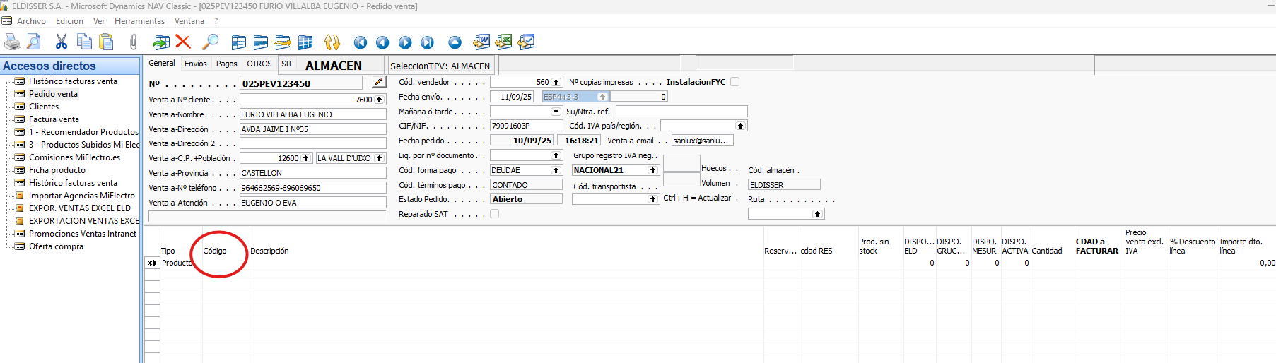 4.- Pasamos a seleccionar código de cliente y lo introducimos