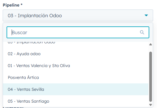 4.- En el pipeline, seleccionaremos la delegación a la que le corresponde la gestión del caso.
