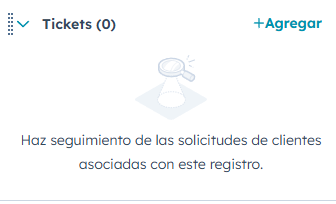 - Dentro del perfil del contacto, accederemos al botón +Agregar en la sección de tickets: