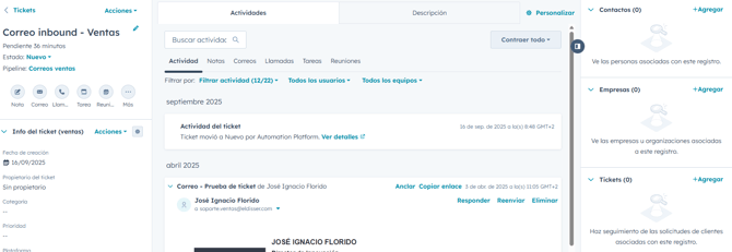 Ventas - Creación de tickets en HubSpot